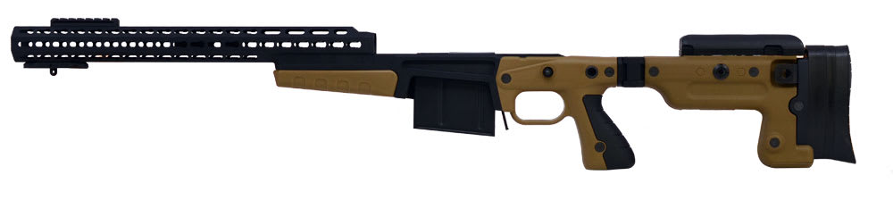 Accuracy International AX stock was built off the popular AW series with some major improvements. One of the newest features is the flat bottom design. This allows for double stacked magazines. The folding Accuracy International AX stock features adjustable cheekpieces and buttpad. The new pistol grip permits the shooter a consistent and even squeeze.