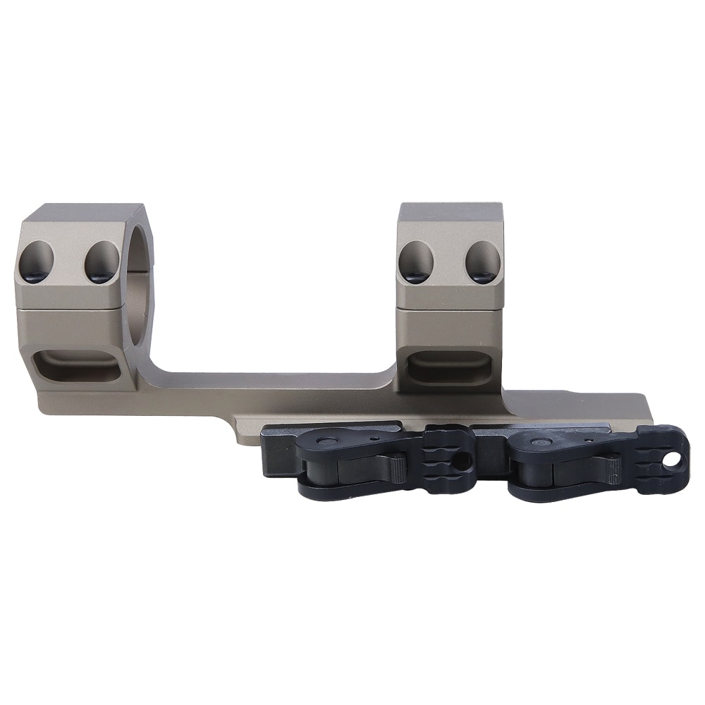 The ADM AD-DELTA-C 30mm FDE Scope Mount with 2" offset and dual QD TAC levers DELTA-C-30-FDE-TAC is a rugged cantilever mount built for AR-style rifles. ADM AD-DELTA-C-30-FDE-TAC offers a 2-inch forward offset and positions the optic centerline at 1.5 inches above the rail, ideal for 30mm scope tubes. Made from 6061 T6 aluminum with a Flat Dark Earth finish, it features dual QD Auto Lock™ Tactical levers for quick detachment while maintaining zero. This mount fits both in-spec and out-of-spec Picatinny rails, making it perfect for tactical and precision shooting setups.