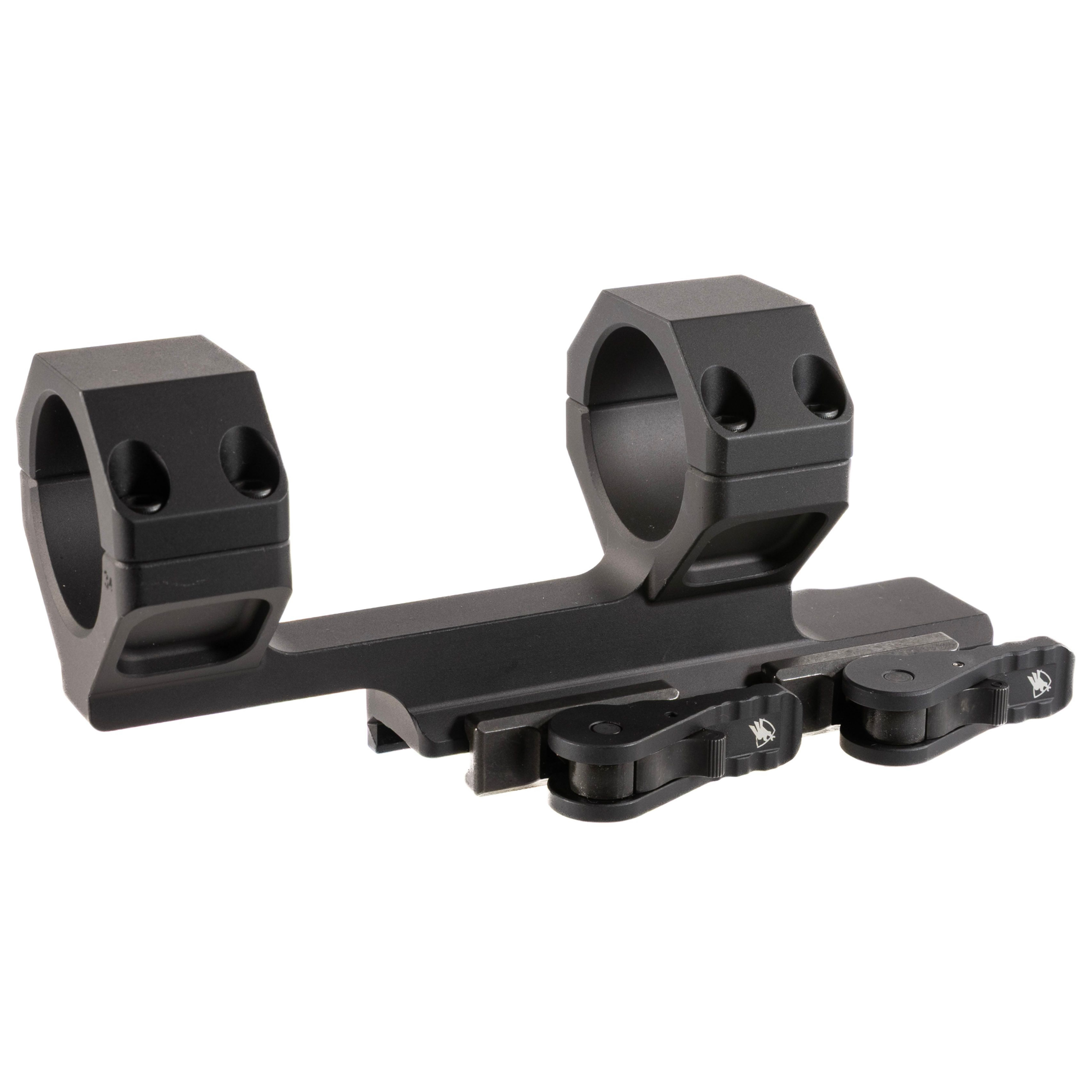 The ADM AD-DELTA 34mm Dual-Ring Scope Mount with 2" Offset and QD STD Lever AD-DELTA-C-M-34-STD is a precision-engineered cantilever mount designed for AR-style rifles. It provides a 2-inch forward offset, positioning the optic centerline at 1.5 inches above the rail, ideal for 34mm scope tubes. Constructed from durable 6061 T6 aluminum and finished with a hard coat T3 Mil-Spec anodize, this ADM AD-DELTA-C-M-34-STD mount ensures longevity and resistance to harsh conditions. The Patented QD Auto Lock Lever system allows for quick attachment and detachment without compromising zero, accommodating both in-spec and out-of-spec Picatinny rails.