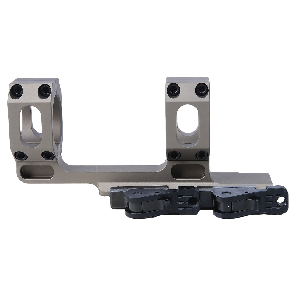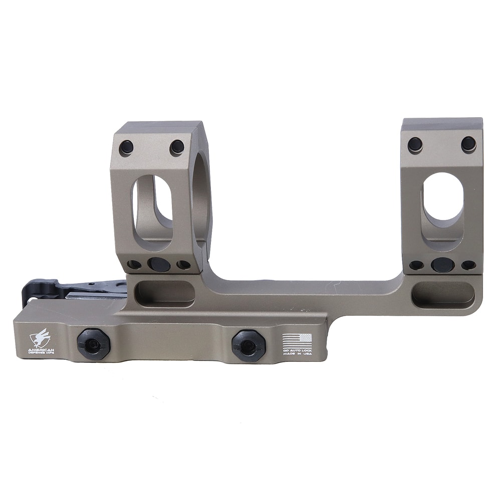 The ADM AD-RECON-M-30-FDE-TAC is a 30mm scope mount designed for flattop AR platforms, featuring a 1.63" Night Vision (NV) height and a 2-inch forward offset to provide proper eye relief for high-power optics. Constructed from 6061-T6 aluminum with a durable Flat Dark Earth (FDE) Type III hard coat anodized finish, this ADM AD-RECON-M-30-FDE-TAC mount supports scopes with large objective housings (up to 56mm). It is equipped with dual QD Tactical levers for a secure, tool-free attachment to both in-spec and out-of-spec Picatinny rails.