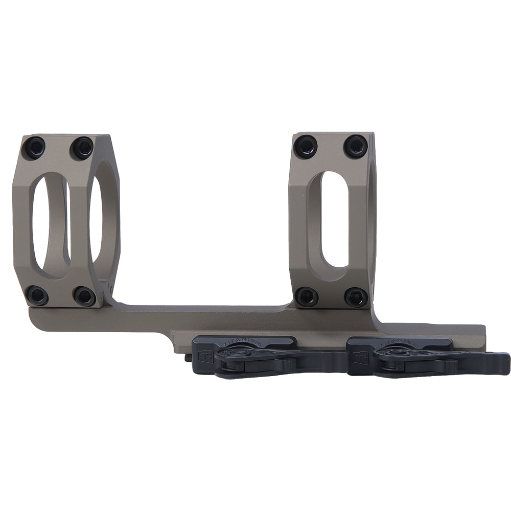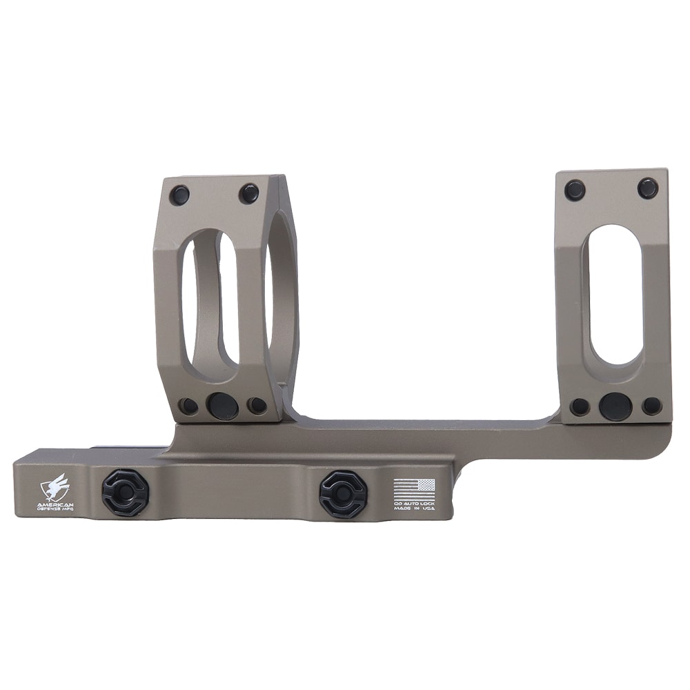 The American Defense Manufacturing AD-RECON cantilever riflescope mount is designed for mounting riflescopes on flattop AR15 rifles. The AD-RECON provides optimal rail clearance for riflescopes with up to a 56mm objective diameter, allowing for a wide range of riflescopes to be mounted on the rifle. The AD-RECON cantilever mount is machined from 6061 T1 aluminum and finished with T3 anodized hard coat. The patented QD Auto Lock Lever System is now made from titanium for maximum durability and weight reduction.