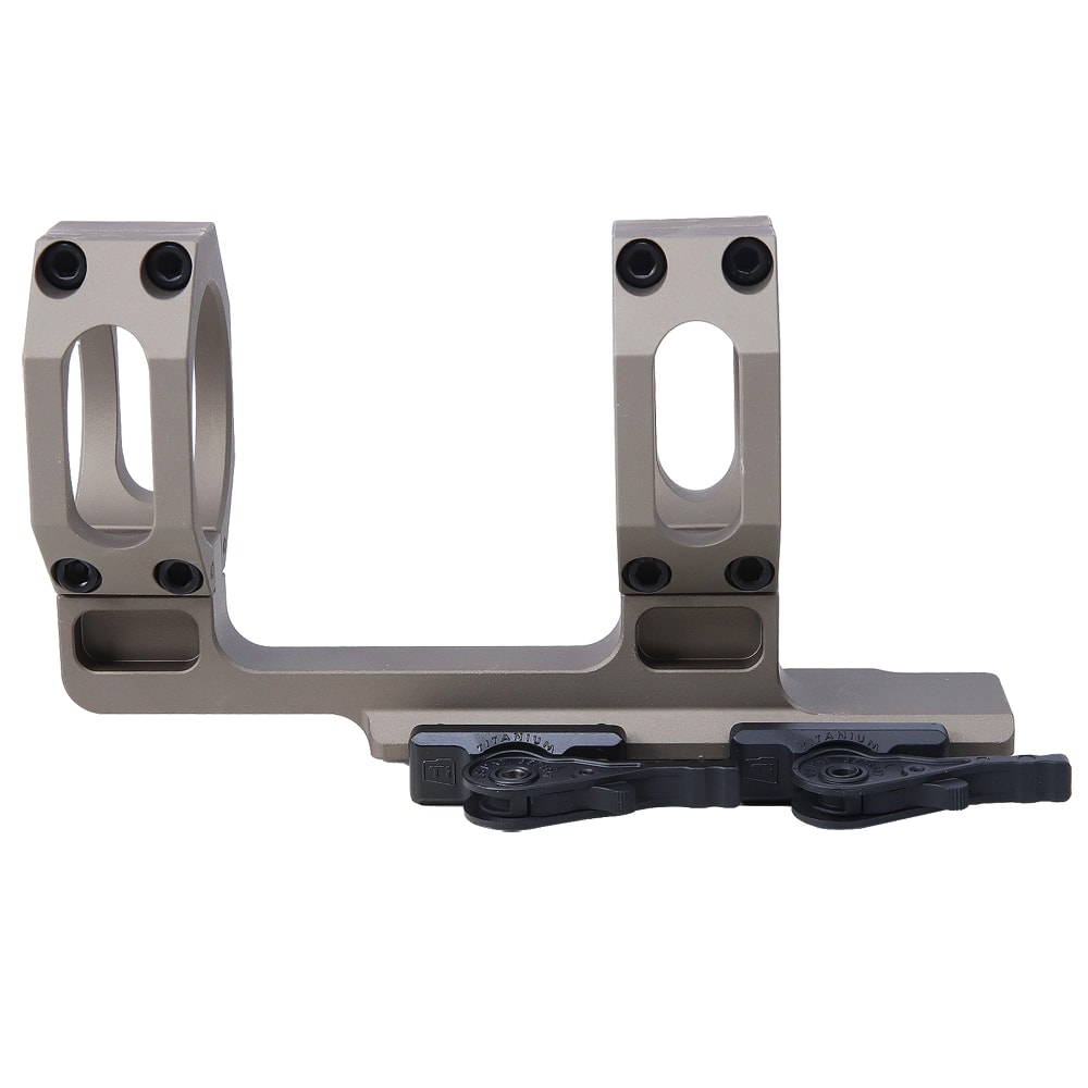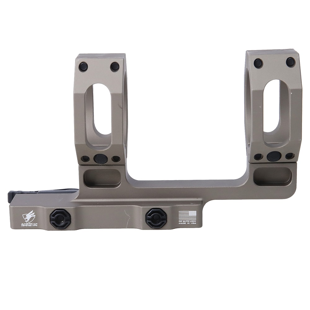 The American Defense Manufacturing AD-RECON-H cantilever riflescope mount is the tallest available scope mounting solution offered by ADM. The AD-RECON-H is designed to be used in conjunction with 12 o'clock mounted laser sighting systems with little or no optical interference. The AD-RECON-H is also ideal for riflescopes with oversized objective diameters or rifles that require a higher cheek weld. The AD-RECON-H cantilever mount is machined from 6061 T1 aluminum and finished with T3 anodized hard coat. The patented QD Auto Lock Lever System is now made from titanium for maximum durability and weight reduction.