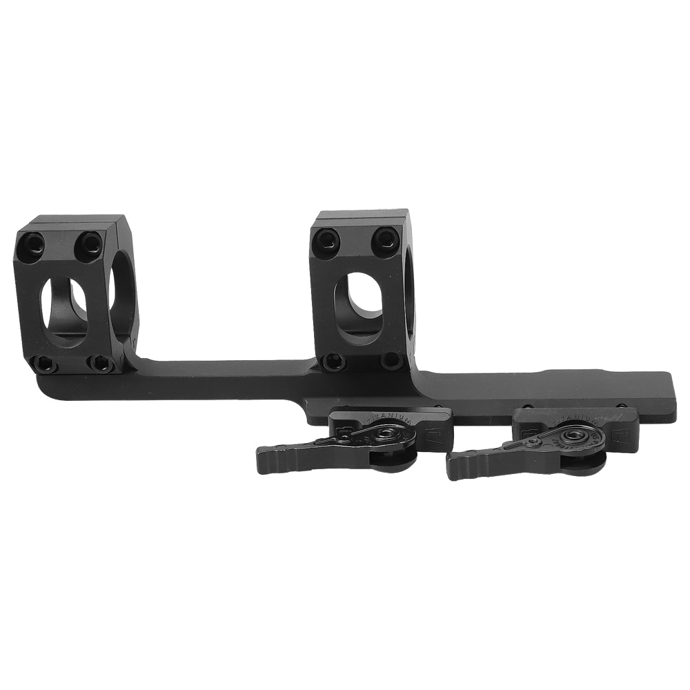 The American Defense Manufacturing AD-RECON-X riflescope cantilever mount offers the highest amount of built-in eye relief of all ADM’s scope mounts. The extended eye-relief allows the mounting of long range optics on a flattop AR platform rifle. The AD-RECON-X cantilever mount is machined from 6061 T1 aluminum and finished with T3 anodized hard coat. The patented QD Auto Lock Lever System is now made from titanium for maximum durability and weight reduction.