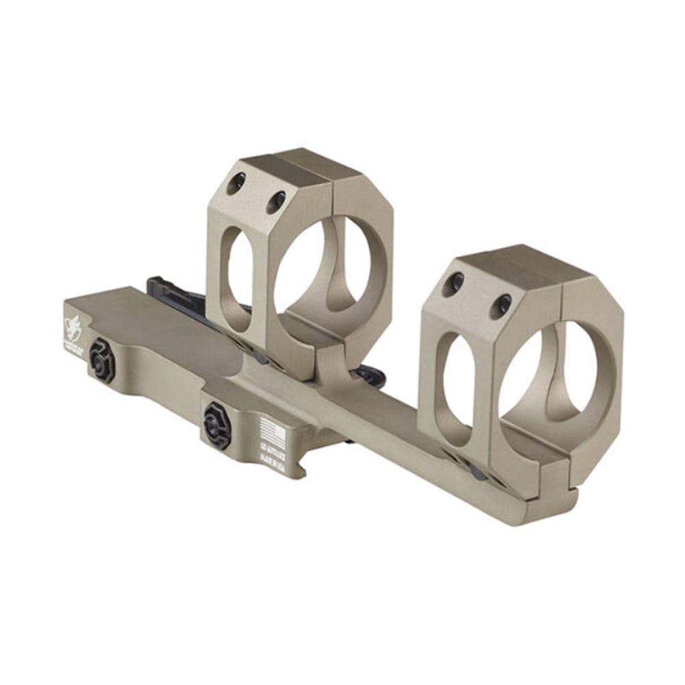 The American Defense Manufacturing AD-RECON-X riflescope cantilever mount offers the highest amount of built-in eye relief of all ADM’s scope mounts. The extended eye-relief allows the mounting of long range optics on a flattop AR platform rifle. The AD-RECON-X cantilever mount is machined from 6061 T1 aluminum and finished with T3 anodized hard coat. The patented QD Auto Lock Lever System is now made from titanium for maximum durability and weight reduction.