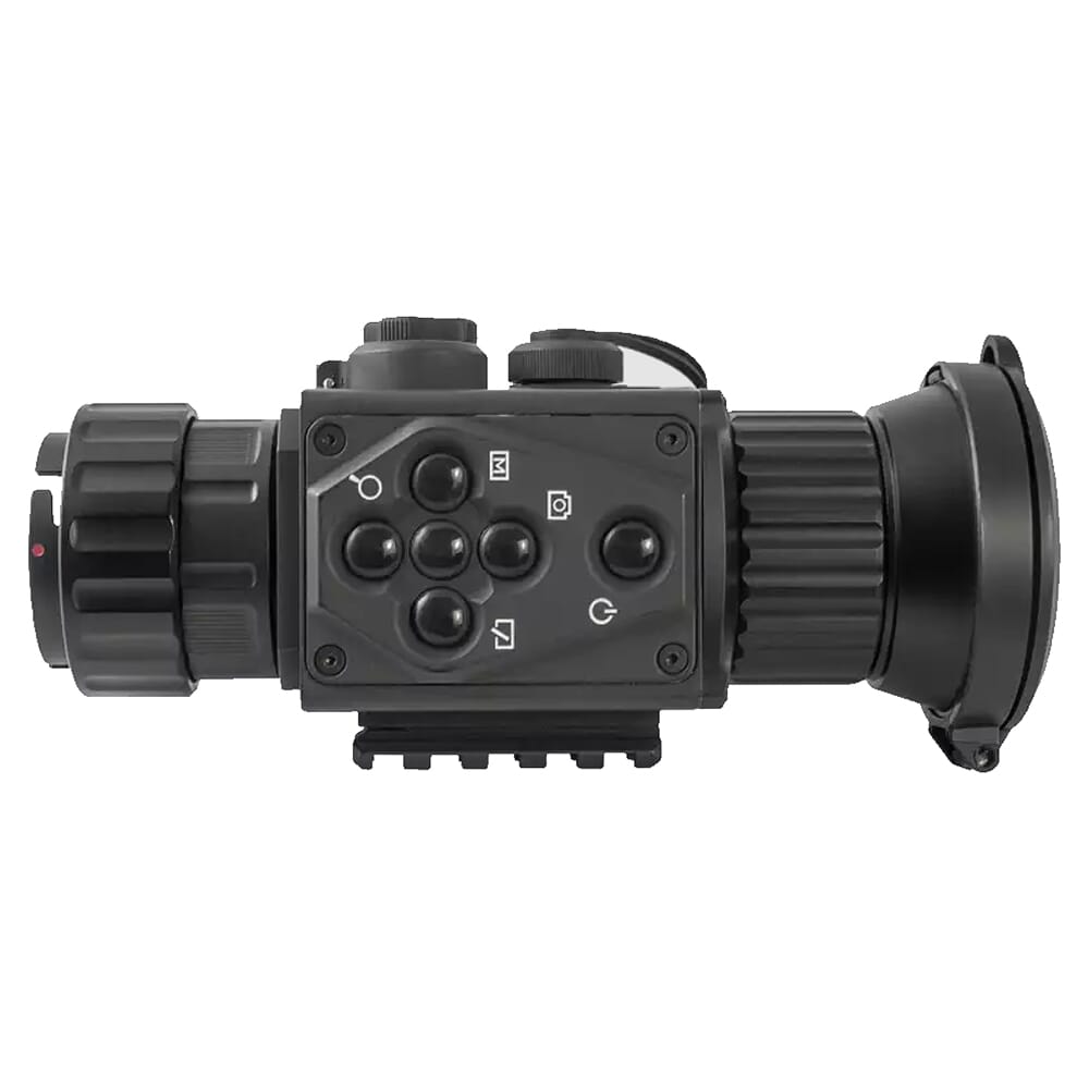 The Victrix PRO by AGM allows any daytime optic to be easily converted into a thermal imager without the need for special tools or equipment. It comes standard with a high-performance thermal detector that can detect a man-sized heat signature from up to 2500 meters away. These heat sources are projected onto a 0.39 inch 1024x768 monitor, and are viewable in four different palettes: white-hot, black hot, red hot, and fusion. White-hot displays sources of heat as white silhouettes over a predominantly black background, while black hot shows sources of heat as black silhouettes over a predominantly white background. Red hot displays heat signatures as red: the higher the temperature, the redder the image. Fusion uses multiple colors to display temperature variations – white shows the hottest part of the image and purple shows the coolest, with yellow, red, and pink in between. Other features of the Victrix PRO include a built-in 16GB EMMC memory module for storing images/video, and WiFi data transmission, allowing images and live video to be streamed directly to a compatible device.