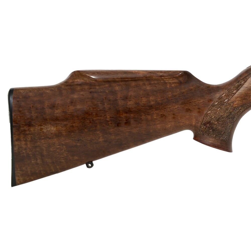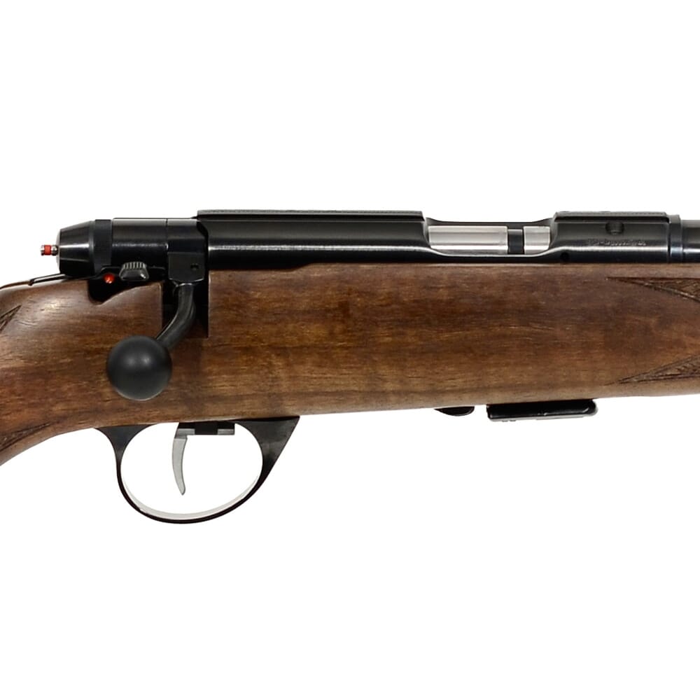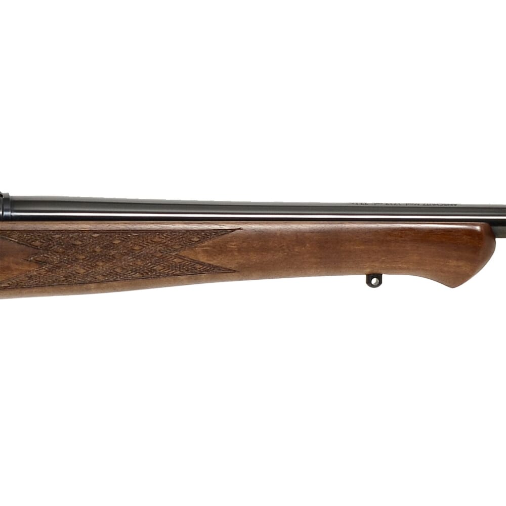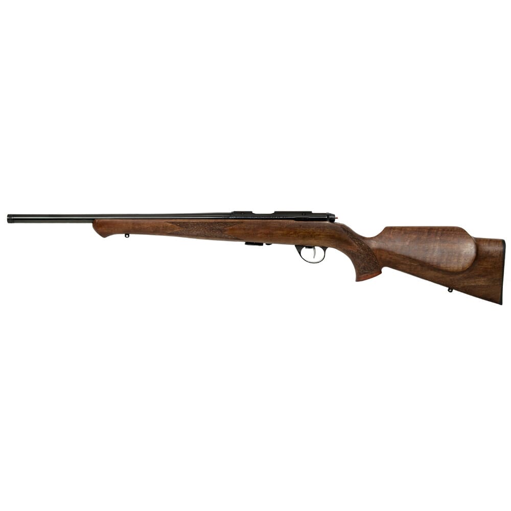 Anschutz rifles are simply the best of the best. With a combination of German precision engineering and superior craftsmanship these rifles are as elegant as they are accurate. The American Varminter Silhouette combines match grade accuracy with practical functionality in this .22 Long Rifle and features a threaded barrel with a counter bored crown. Suppressor ready, you can take on those varmints and predators without spooking other game. The counter bored crown on the threaded barrel is essential to maintaining the accuracy Anschutz demands from their rifles. The smooth and crisp breaking Anschutz two stage triggers are a marvel of modern engineering and are quite a treat to shoot. Sporting a warm comfortable Monte Carlo walnut stock, this rifle has the feel of a trusted classic. If you want a rifle that shoots as good as it looks, then look no further, this Anschutz 1712 AV Silhouette is the rifle for you!