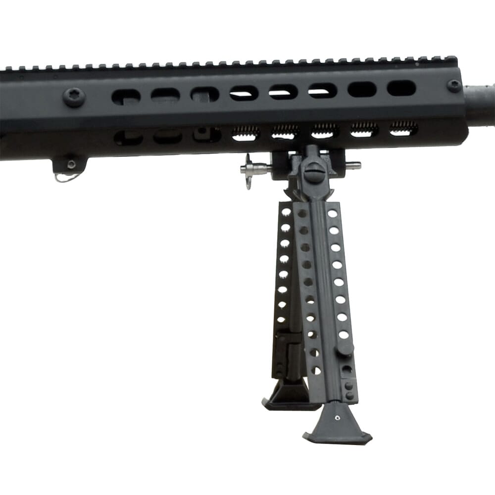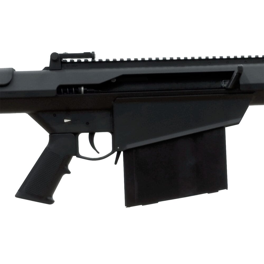 This Barrett M107A1 50 BMG CQ rifle has a black receiver and a 20" fluted barrel. This Barrett M107A1 rifle suppressor ready due to an all new bolt carrier group. Other features include a four-port cylindrical muzzle brake, lightweight aluminum upper receiver with an integrated 27 MOA rail, thermal-guard cheek piece, titanium barrel key, fully chrome-lined bore, rail-mounted aluminum rear grip, and aluminum recoil buffer system.