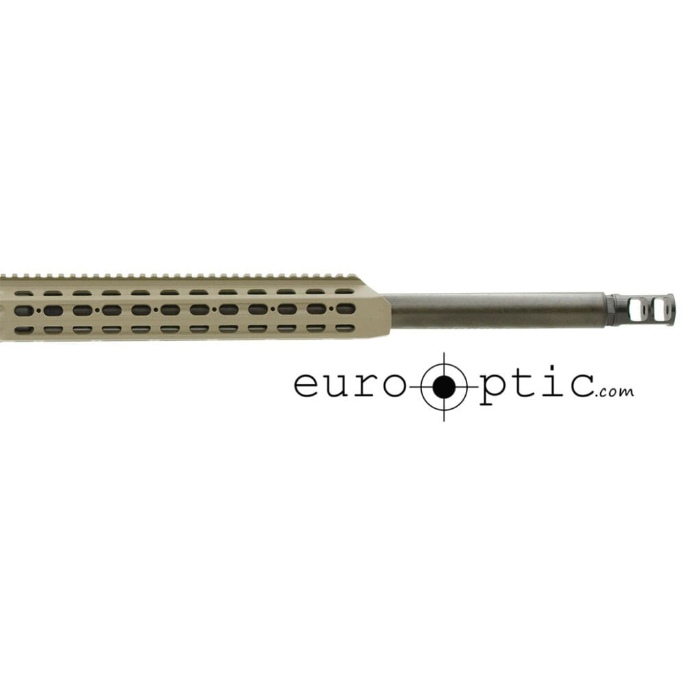 This Barrett MRAD 6.5 Creedmoor Rifle features a flat dark earth folding stock, 24" carbon fiber barrel, adjustable cheek piece, M1913 rail with 20 MOA taper, bolt guide for dust protection, ambidextrous magazine release, front-loading barrel design, single button length of pull adjustment, thumb-operated safety, removable combat-proof trigger module, and the ability to accept standard M4/M16 pistol grips.