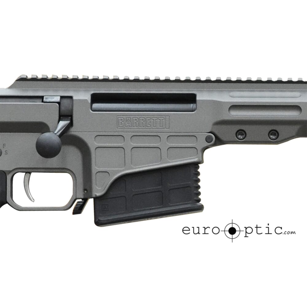 This Barrett MRAD 6.5 Creedmoor Rifle features a tungsten grey folding stock, 24" carbon fiber barrel, adjustable cheek piece, M1913 rail with 20 MOA taper, bolt guide for dust protection, ambidextrous magazine release, front-loading barrel design, single button length of pull adjustment, thumb-operated safety, removable combat-proof trigger module, and the ability to accept standard M4/M16 pistol grips.