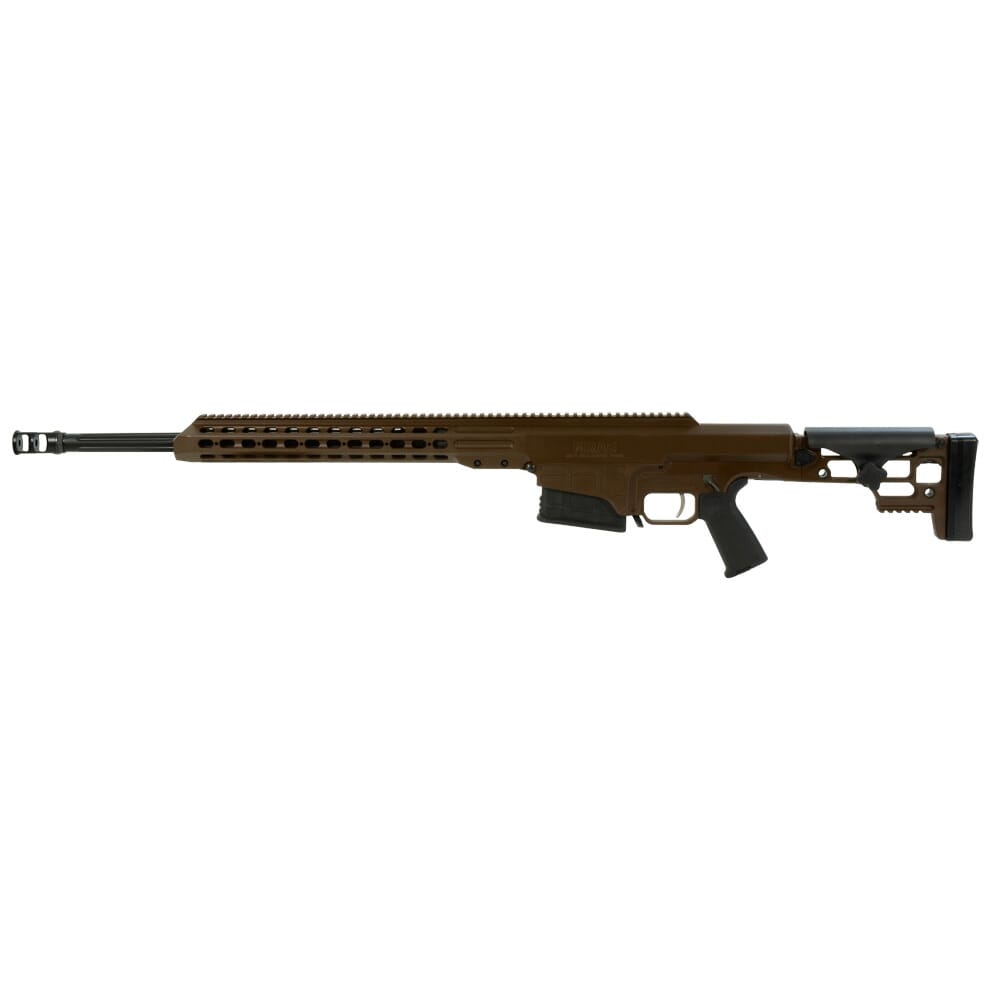 The Barrett MRAD rifle's stock is foldable for enhanced portability yet locks in as solid as a fixed stock rifle, creating a rigid platform for consistent firing. When folded, the stock latches around the bolt handle for added security during transport. Because the stock folds to the bolt handle side of the action, the rifle is the same width overall, folded or extended. Made of a temperature resistant polymer, the adjustable cheek piece also offers a consistent rifle to user contact point. The rifle's length of pull can be set to five different positions with the push of a single button. From its multi-positional quick-detach sling sockets to the Barrett Multi-Role Brown color of the rifle that blends into any environment-every detail of the Barrett MRAD has been carefully designed to create one thing: a high-performance rifle you can truly make your own.