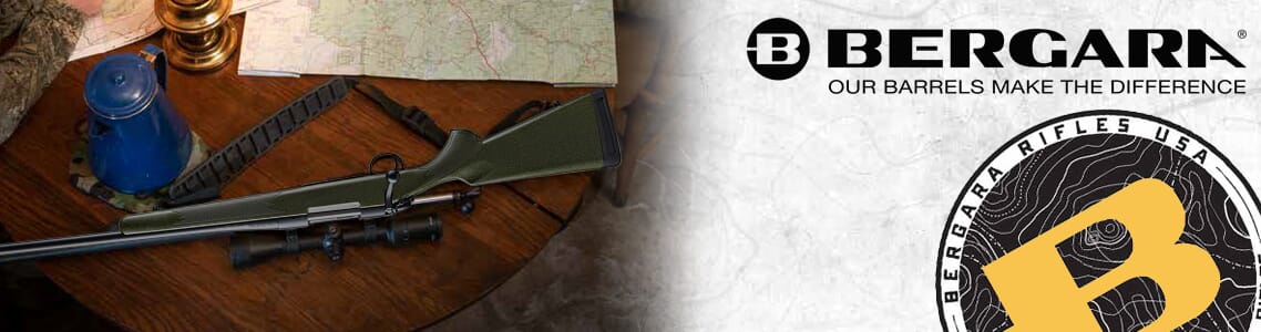 The Bergara Hunter rifle features a molded green fiber glass synthetic stock with tan and black specs for a tasteful camo look. A SoftTouch coating gives the stock a soft, tacky feel that makes it easy to grip even in harsh winter hunt. This rifle is chambered for .22-250 Rem, .243 Win, .270 Win, .300 Win Mag, .30-06 Springfield, .308 Win, 6.5 Creedmoor, 7mm Rem Mag, and 7mm-08.