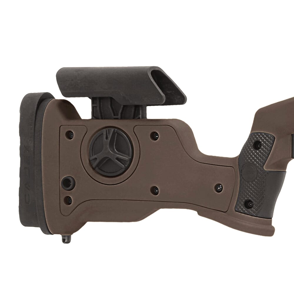 The Strike Nuke Stock was designed to be a blend of highly ergonomic benchrest stocks and lightweight hunting stocks, ensuring that the rifle outfitted with almost everything a precision shooter needs. The buttstock is adjustable for length of pull, recoil pad height, and features a tool-less adjustable cheek piece. The R7 Shepherd’s grip features a pistol like design allowing for a comfortable grip when shooting from the prone position. The bottom metal features an enlarged trigger guard for shooting with gloved hands and is AICS magazine compatible. The forend of the Cadex R7 Shepherd Rifle is outfitted with M-Lok attachment points at the 3, 6, and 9 o’clock positions.