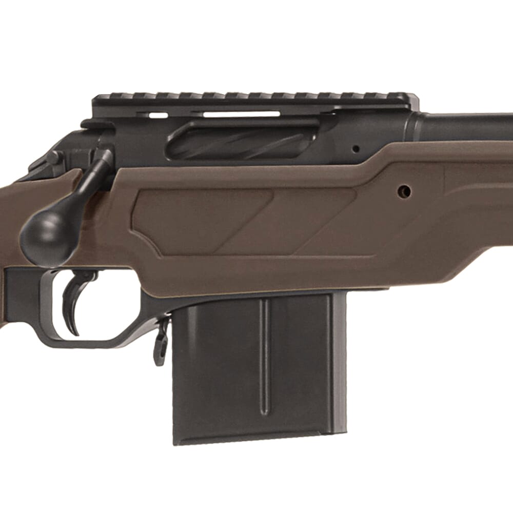 The R7 Shepherd Rifle is a long action rifle from Cadex that features the more “traditional” rifle stock. Don’t let the word “traditional” fool you though, the R7 Shepherd is supported by Cadex’s Strike Nuke synthetic stock with a built in micro-chassis system for a more durable and accurate rifle. The R7 Shepherd action is precision machined from 416 stainless steel and features a 50° bolt throw and 4 lug system. The barrel is a straight tapered 1.238” Unisig barrel that has been fluted and 5/8x24 threaded for the attachment of most muzzle devices. The trigger is Cadex’s own DX2 Evo 2-Stage trigger that can be easily converted to a single stage trigger if the shooter prefers. The R7 Shepherd Riflefeatures 20 MOA action rail for mounting optics.