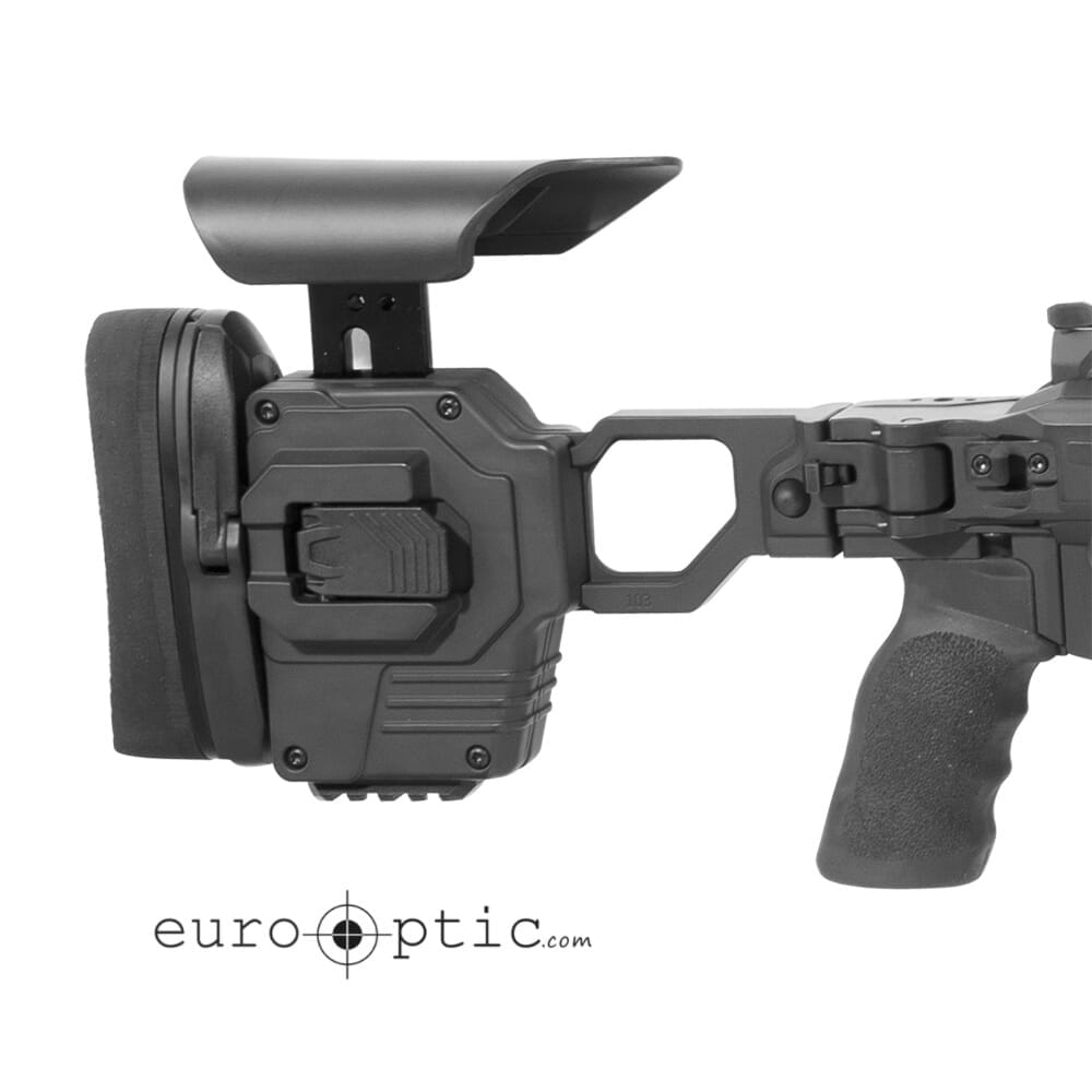 The CDX-50 Tremor .50 BMG Rifle chassis is ergonomic and customizable with features designed specifically for the long range shooter. The buttstock of the rifle allows for tool-less adjustments to be made to the length of pull, cheek piece height, and butt pad height. Additionally, the buttstock folds for compact storage and transport as well as bolt handle protection. The forend of the chassis is designed to help eliminate the effects of image distortion due to barrel heat. In addition to the full length top optics rail on the CDX-50 Tremor, the forend of the rifle features M-LOK attachment points at the 3, 6, and 9 o’clock positions.