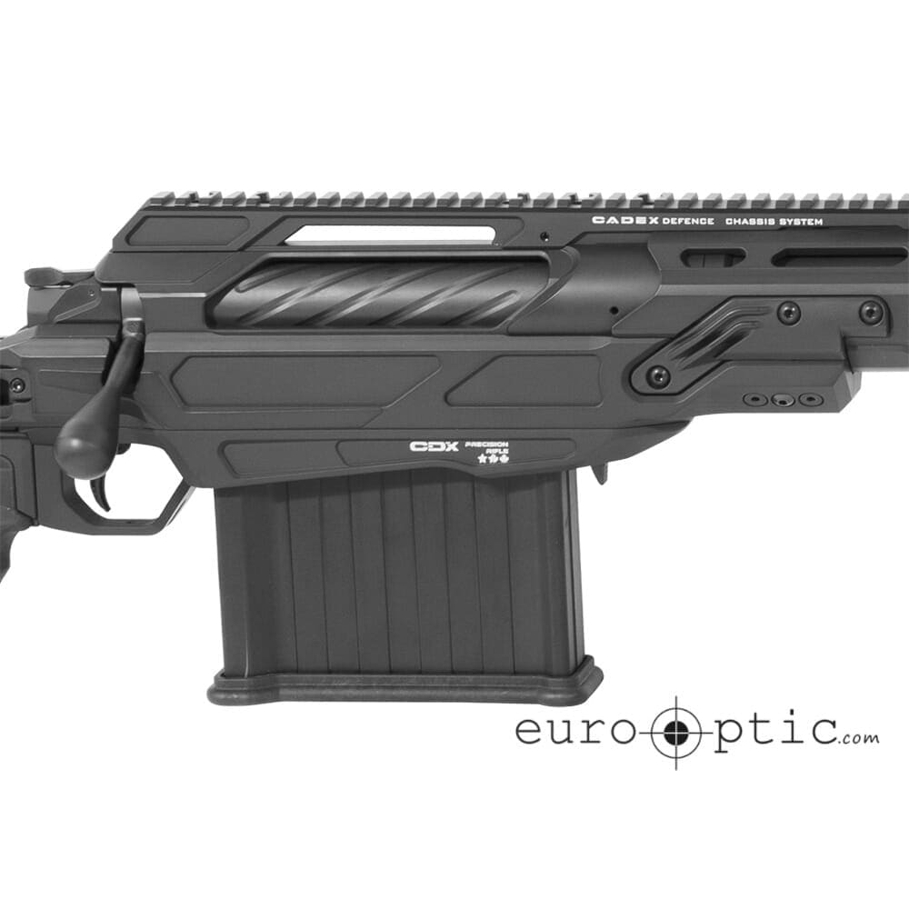 The Cadex CDX-50 Tremor is a precision rifle built to deliver the .50 BMG payload with extreme accuracy at extended ranges. The Tremor Rifle is surprisingly lightweight considering its size and chambering but still is able to mitigate felt recoil due to the muzzle brake and chassis design. The receiver is machined from 416 stainless steel, Cerakote finished, and it overbuilt for maximum durability. The bolt is also machined from 416 stainless and features 4 lugs, 2 Remington style ejectors, and a heavy duty extractor for unequivocal reliability. The triple lug recoil system ensures that all energy produced by the .50 BMG round is equally dispersed into the chassis system. The CDX-50 Tremor features Cadex’s DX2 Evo Trigger that is factory set to two stage operation but can be configured to single stage operation based on the preference of the shooter.