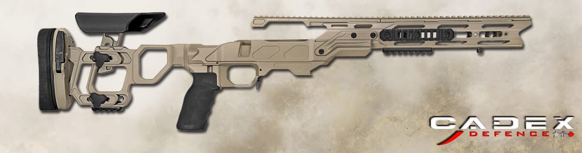 Cadex' Field Tactical chassis was designed primarily with law enforcement sharpshooter personnel in mind. The primary difference between this series and some of Cadex' other chassis is a fixed, rather than folding, butt stock. This is a feature that appeals to many shooters, if for nothing more than the slight weight savings that it has over a same-model chassis with a folding stock, as well as the completely solid arrangement which may have some advantages over a folding design. At 5.5 - 5.58 lbs., these chassis fall within the mid-range of weight offered by Cadex.