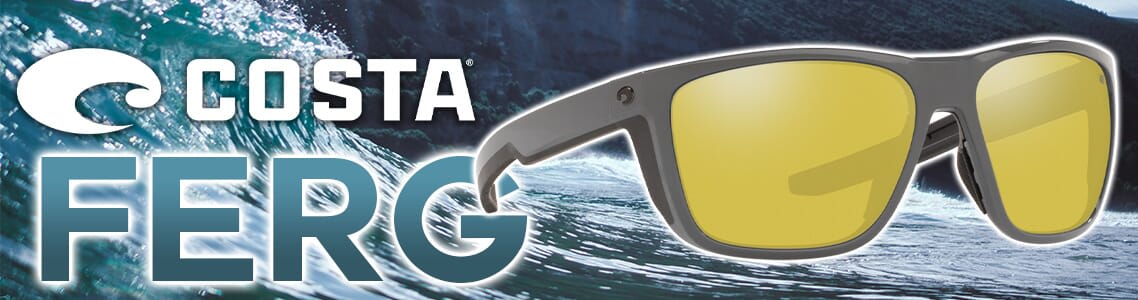 Named for Costa Sunglasses founder Ray Ferguson, Costa's Ferg sunglasses exemplify the high standards on which the Costa legacy was built. When top-of-the-line performance is what you're looking for, look no further than the Ferg. It boasts top and side shields, integrated texture Hydrolite® rubber and vented adjustable nose pads, topped off with 100% UV Protection polarized lenses for the perfect view no matter where your adventure takes you. And as always, every pair of Costa sunglasses comes with a Costa Case, cleaning cloth, and manufacturer's Limited Lifetime Warranty.