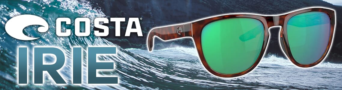 Costa Irie Black Frame Sunglasses w/Green Mirror 580P Lenses 06S9082-90820255