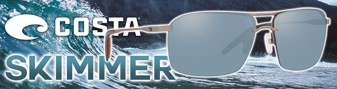 Channeling the ultralight seaplane of the same name, Costa's Skimmer sunglasses are made with a super light titanium frame, slim temples and air cushioned, full-motion nosepads. Hydrolite® textured temples add grip, and integral spring hinges for light, airy comfort combine for all day wearability for a pair of sunglasses you might even forget you're wearing.
