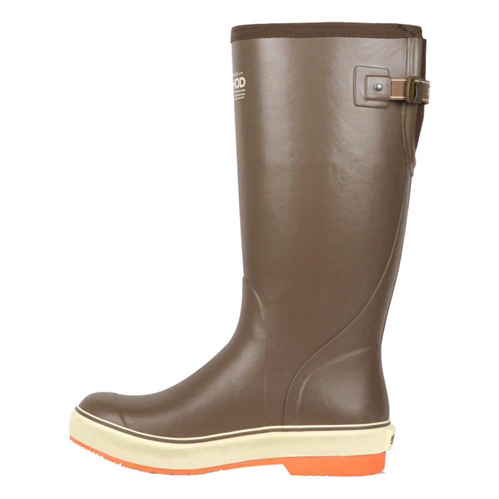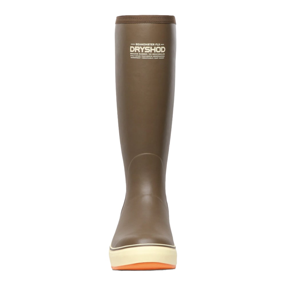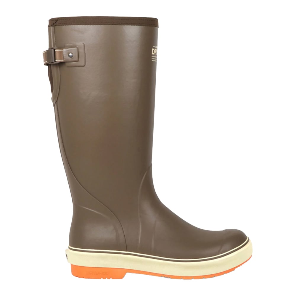 The Dryshod Seamonster (Brown/Cream/Orange color variant) is a fully waterproof fishing-style boot built for serious wet-weather performance. With its 5mm Densoprene® foam-insulated bootie, it delivers warmth and comfort without sacrificing flexibility. The WIXIT Cool-Clad™ mesh lining allows for superior breathability and moisture management, while a steel shank ensures reliable arch support on long days. At the sole, a micro-etched CROSSTAR™ tread grips and channels water efficiently underfoot, and the rugged hand-laid rubber shell protects against scrapes, abrasions, and the wettest conditions. Pull tabs and a rigid heel kick make these boots easy to slip on and off - offering practical comfort for fishing, working near water, or navigating slick terrain.