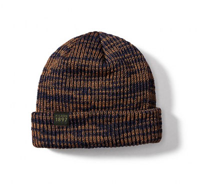 This navy Filson watch cap is made from wool.