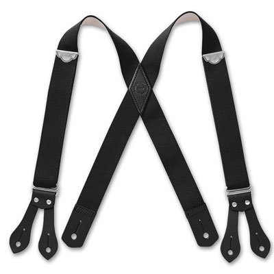 Genuine Bridle Leather tabs make the old fashioned adjusters on these sturdy, classic suspenders. Now 4 inches longer in length, these suspenders use color-fast cotton elastic and Bridle leather reinforcements. Bridle leather tabs attach securely to the suspender buttons or rivets on your pants. Straps are 1 1/2inches wide. Made in USA.