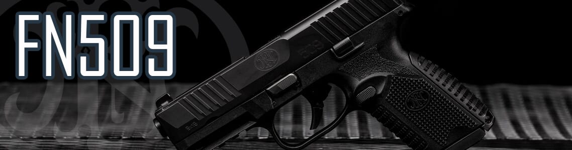 FN 509 Pistols are double-action, striker-fired, autoloading pistols that come with improved cocking serrations (front and rear), luminescent fixed 3-dot sights, interchangeable backstraps, and more.