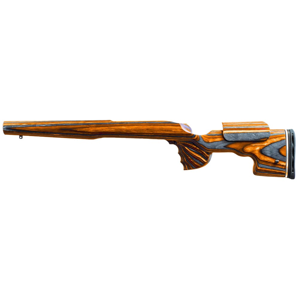 The GRS Sporter Weatherby Vanguard SA Orange/Black is a lightweight, ergonomic laminate stock designed for Weatherby Vanguard Short Action rifles. It features the GRS SpeedLock system for tool-free adjustment of cheekpiece height and length of pull, delivering a tailored shooting position. The bold orange and black finish offers both visual appeal and durable field performance. Designed for right-handed shooters, this stock fits standard barrel profiles and is ideal for hunting and sport shooting. Glass bedding is recommended for optimal accuracy and alignment.