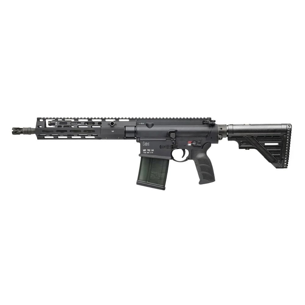 The HK MR762 A4 13" Barrel Short Barrel Rifle is a semi-automatic 7.62×51 mm NATO platform that blends compact maneuverability with the proven reliability of Heckler & Koch’s A4-series design. With its shorter 13″ barrel, this configuration offers improved handling in tight spaces while still delivering the power and performance associated with the MR762 family. The A4 platform typically features a flat-top upper with a full-length Picatinny rail for easy mounting of optics and accessories, as well as a modular handguard that accommodates tactical lights, grips, or other attachments. Ergonomic controls and an adjustable stock promote comfortable operation across varied shooting scenarios. This model includes one 20-round magazine, offering a balance of capacity and tactical flexibility where permitted. Engineered with precision machining and robust construction, the MR762 A4 Short Barrel Rifle provides dependable performance in a compact, modern rifle package.