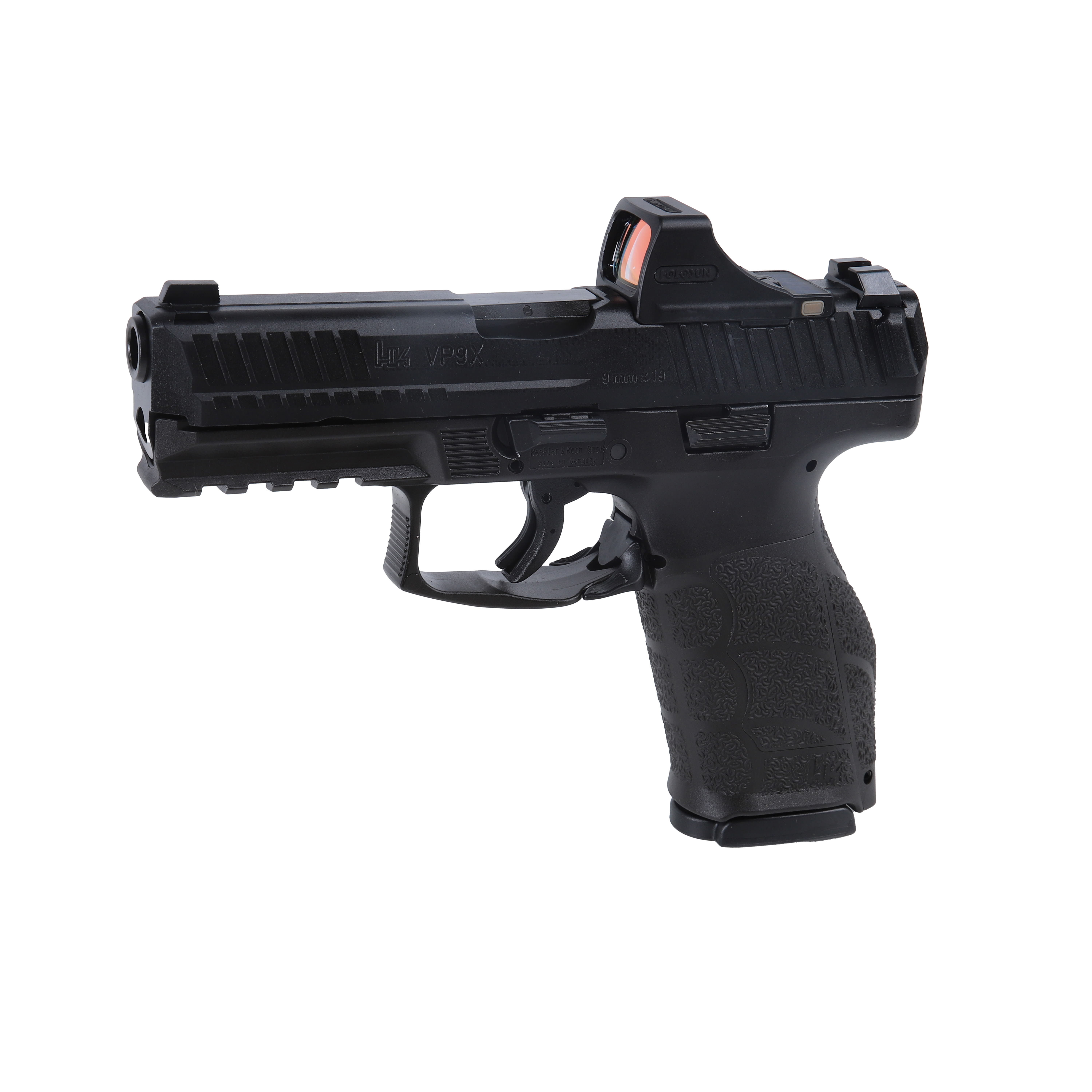 The Heckler and Koch VP9A1 X OR with Holosun SCS is a feature-rich 9mm semi-auto pistol combining modern performance with out-of-the-box optics capability. It includes a 4.09-inch barrel and a 15 + 1 capacity, built on HKs durable black polymer frame. This model comes equipped with a factory-mounted Holosun SCS red dot optic and retains its optics-ready slide design, offering exceptional versatility and aiming speed for both defense and range applications.