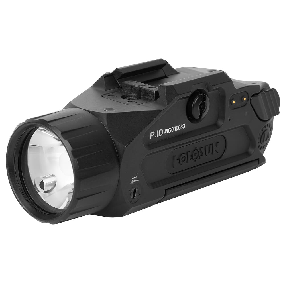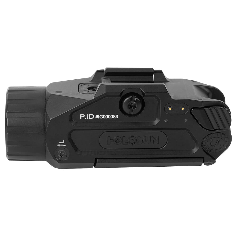 The Holosun P.ID-DUAL (Positive Identification – Dual Output) is an ideal solution for boosting shooter confidence, target identification, and situational awareness in low light environments. The P.ID-DUAL excels in pistol-mounted applications, but is also compatible with any firearm equipped with a MIL-STD 1913 Picatinny rail. When set to high-output, the P.ID-DUAL delivers an ultra-bright 17,000 Candela center-spot and 800 lumens of peripheral light. This concentrated beam of intense white light provides flawless identification/illumination, as well as temporarily impairing your target’s dark-adapted vision. Alternatively, the output can be set to low to produce a beam with a 8,500 Candela center-spot and 400 Lumens of peripheral light – still enough for positive target identification while preserving battery life. The illumination abilities of the P.ID-DUAL is perfectly complemented by a high-visibility green laser for more intuitive target engagement at close range, as well as an IR laser for use with night vision devices. Other features of the P.ID-DUAL include a durable CNC milled 7075 anodized aluminum construction with 2000g shock-resistance to withstand sustained heavy recoil, and a IPX8 water-resistance rating for use in wet environments. In addition, the P.ID-DUAL can operate for up to 60 minutes, and the 18350 battery can be charged without the need to remove the light from the host-weapon thanks to the included USB magnetic cable.