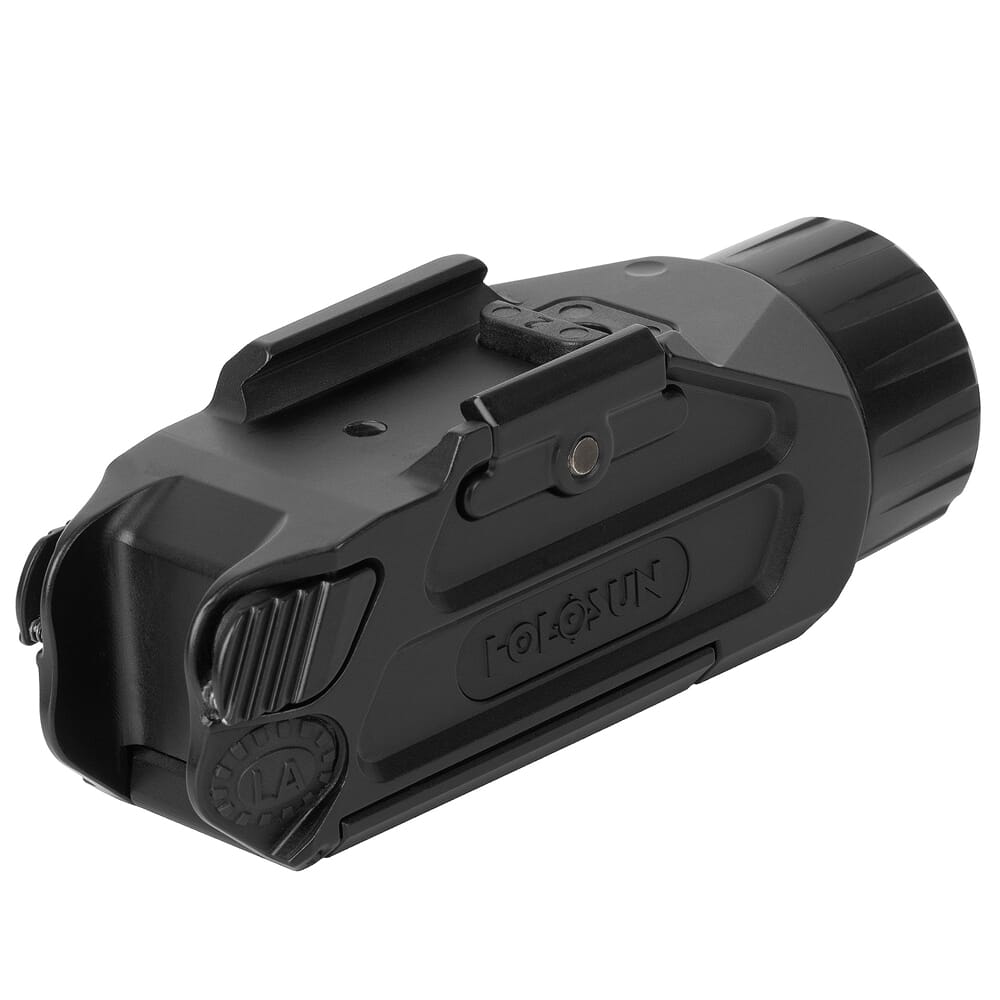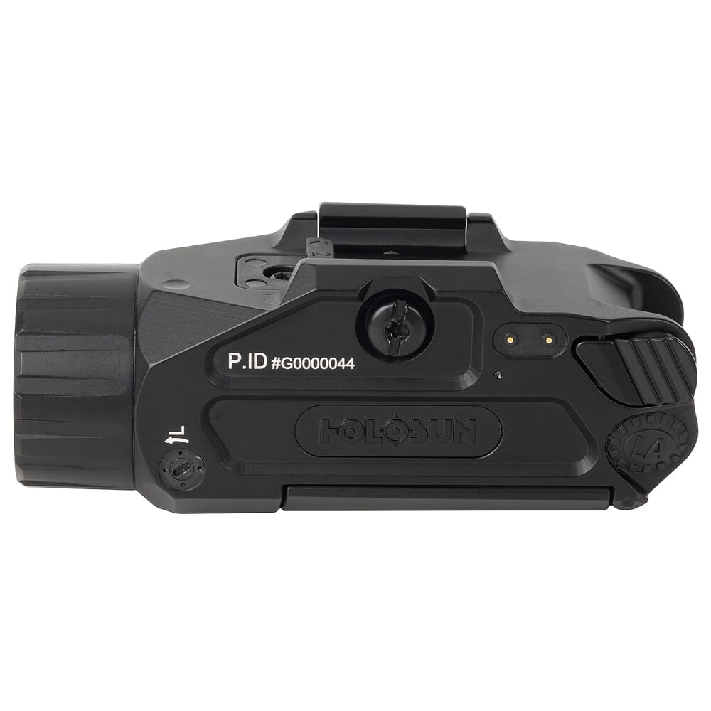 The Holosun P.ID Plus (Positive Identification Plus) is a universal illumination tool featuring a powerful white light and visible green laser. Holosun’s P.ID Plus is designed for use with Picatinny rails and manufacturer-specific handgun rails using the included adapter keys. P.ID Plus features 1000 lumens and 20,000 candela in high mode, 500 lumens and 10,000 candela in low mode, and is compatible with common duty holsters. P.ID Plus features a black anodized 7075 aluminum housing with a magnetic charging port for the included 18350 rechargeable battery that provides up to 60 minutes runtime. P.ID Plus has separate activation buttons for white light and laser which have a different tactile feel to distinguish between them. P.ID Plus includes Plus Mode to fire the white light and the visible laser simultaneously, is IP68 dust and waterproof, and is tested to 2000g of shock resistance.