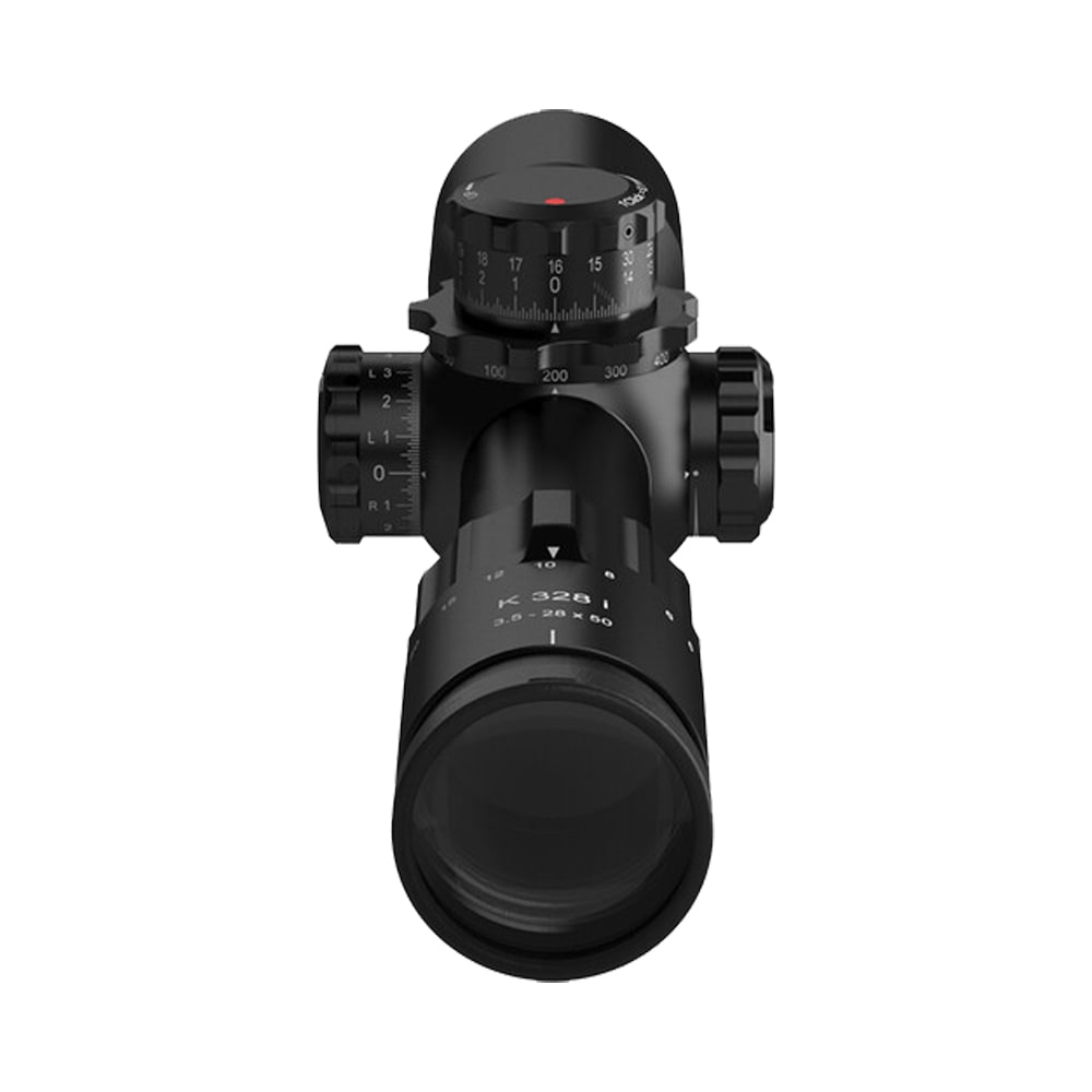 The Kahles K328i 3.5-28x50mm CCW MOAK+ Illuminated FFP Riflescope 10701 is a high-performance scope designed for long-range precision shooting. It features a 3.5-28x magnification range, a 50mm objective lens, and first focal plane reticle. The Kahles 10701 scope includes an illuminated MOAK+ reticle for enhanced visibility in low-light conditions and a counter-clockwise windage adjustment for fine-tuned accuracy. Ideal for precision rifle shooting, the K328i is built to provide exceptional clarity, durability, and adjustability. The Right-side windage turret is a notable feature, allowing for easier manipulation without interfering with the shooting hand.