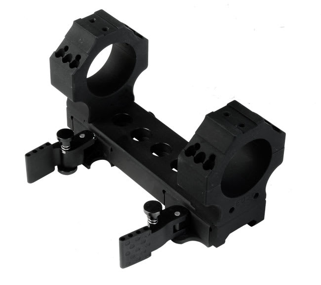 This Scopelist Modular Dual Lever quick detach 34mm Mount with 0 MOA and 3-Slot ECOS Caps has a weight 8 ounce and an overall length 5".
