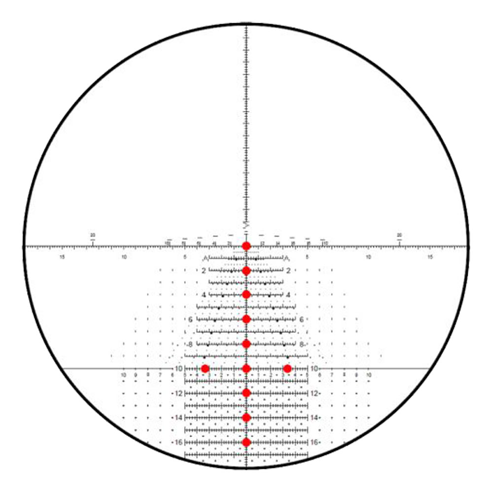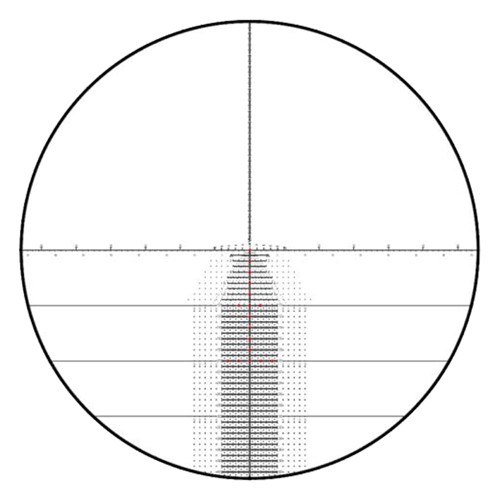 Very fine reticle to aid in precise aiming at high power and distant ranges. Refined, patented “chevron” mil markers subtend to 0.1 mils. Versatile marker groupings for measuring targets occur throughout the reticle.