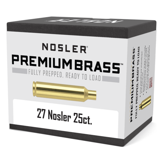 This 25-count box of Nosler Premium Brass for 27 Nosler is designed for high-performance hunting and long-range shooting. Each case is meticulously crafted for consistent chambering and ignition. Ideal for reloaders seeking top-tier quality.
