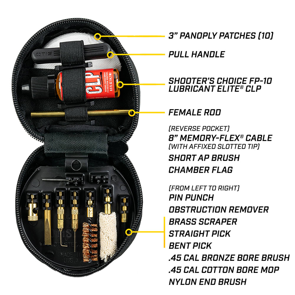 Maintain your .45 Caliber pistols in peak condition with the OTIS .45 Caliber Pistol Cleaning Kit FG-645-45. This comprehensive cleaning kit is the ultimate solution for firearm enthusiasts and professionals who demand the best in firearm maintenance. Equipped with high-quality cleaning rods, brushes, and patches, this kit ensures a thorough cleaning, removing residue and buildup for optimal firearm performance. Its compact and portable design makes it easy to store and transport, allowing you to take it with you to the range or in the field. Compatible with a variety of .45 Caliber pistols, this kit is a versatile and essential tool for anyone serious about firearm care. Keep your pistols in top condition and ready for action with the OTIS .45 Caliber Pistol Cleaning Kit.