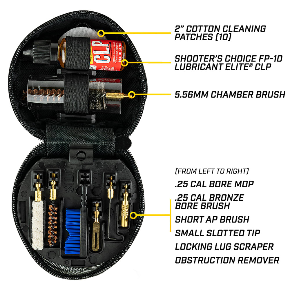 The OTIS MPSR Cleaning Kit is the ultimate solution for maintaining the performance and longevity of your .223/5.56mm firearms. This comprehensive cleaning kit is meticulously designed to include all the essential tools needed for effective cleaning and maintenance. Whether you're a novice or a seasoned gun owner, the kit's durable and reliable components ensure long-lasting use, making it a valuable addition to your firearm maintenance routine. Its compact and portable design allows for easy storage and transport, making it a perfect companion for your shooting adventures. Keep your firearms in top condition and ensure their reliable performance with the OTIS MPSR Cleaning Kit.