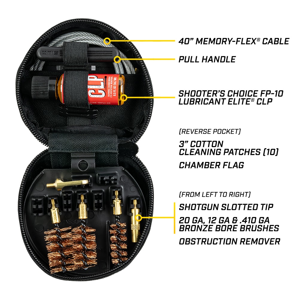 Keep your FG-410 shotgun in pristine condition with the OTIS Shotgun Cleaning Kit FG-410. This comprehensive cleaning kit is your go-to solution for maintaining the performance and longevity of your shotgun. It is meticulously designed to provide efficient and thorough cleaning, ensuring your firearm is always in top shape. The kit includes high-quality cleaning rods, brushes, and patches, all crafted to meet the high standards of shotgun enthusiasts. Its compact and portable design makes it easy to store and transport, whether you're at home or in the field. This kit is perfect for both novice and experienced shotgun owners, offering the tools and confidence needed to keep your shotgun in perfect working order. Experience the difference with OTIS, and keep your FG-410 shotgun performing at its best.