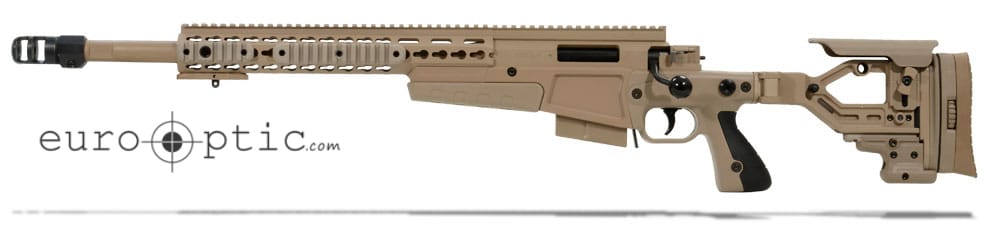 This version of the Accuracy International AXMC is a .308 Winchester with a 20" threaded barrel with muzzle brake and features a pale brown left-handed stock.