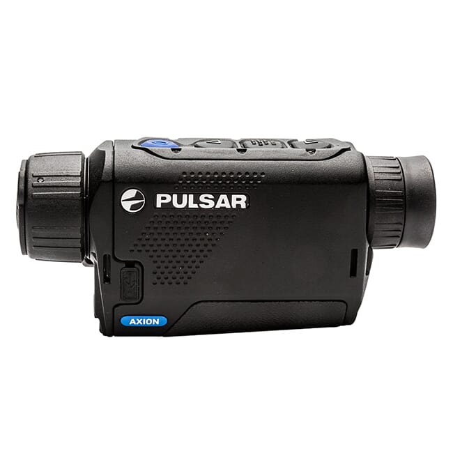 The Pulsar Axion XM38 is a compact thermal handheld designed to easily fit in pocket while hunting. The Axion ergonomically places the controls on the top of the thermal imager to ensure easy one hand operation. But don’t let its small size fool you – the Pulsar Axion is capable of detecting human sized targets out to 1700 meters using its professional grade 12 µm thermal sensor and large objective lens.