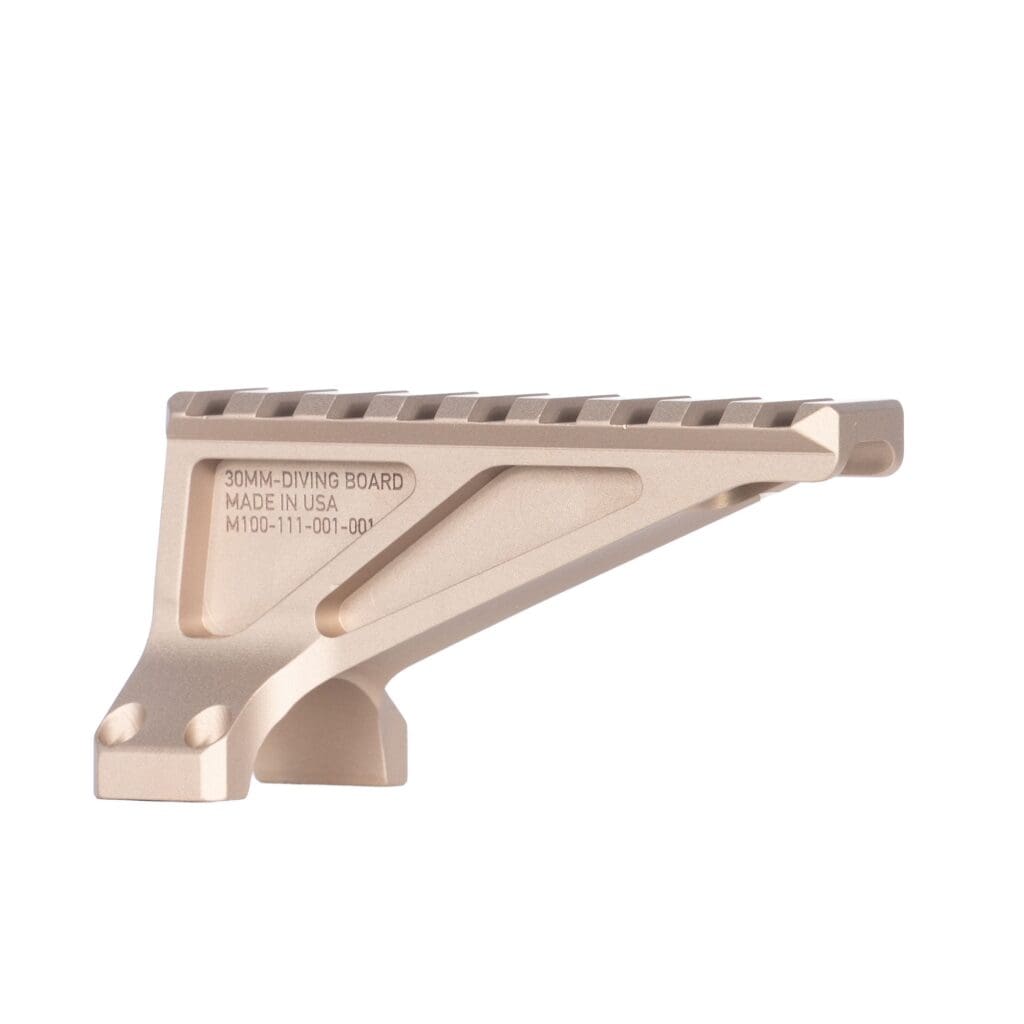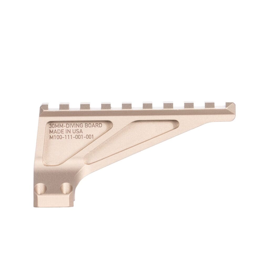 The Reptilia 30mm FDE ROF-Diving Board Mount is a lightweight, low-profile optic accessory designed to attach directly to compatible 30mm scope mounts, providing a stable platform for secondary optics or accessories. Finished in durable Flat Dark Earth (FDE), it offers both ruggedness and a clean, integrated look. Ideal for shooters who want rapid transition capability or additional mounting space without adding bulk, the ROF-Diving Board enhances versatility while maintaining a secure, mission-ready setup.