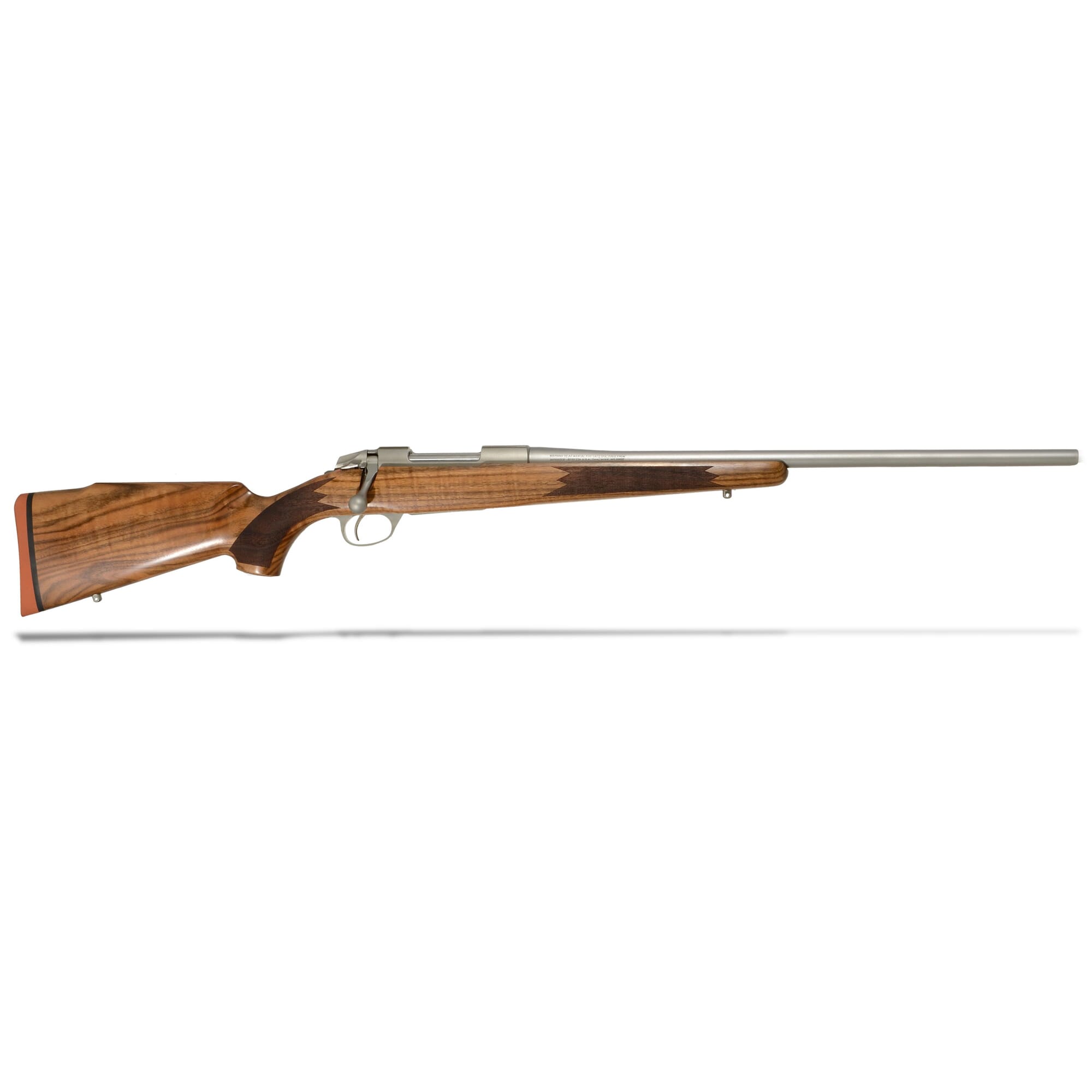 The Sako 85 Hunter Stainless Rifle features a Monte Carlo style oiled walnut stock with red recoil pad, palm swell, and Sako checke-rings. This rifle comes without open sights, and XS, S, and M models are also available with short barrel with thread at the muzzle for muzzle brake or suppressor.