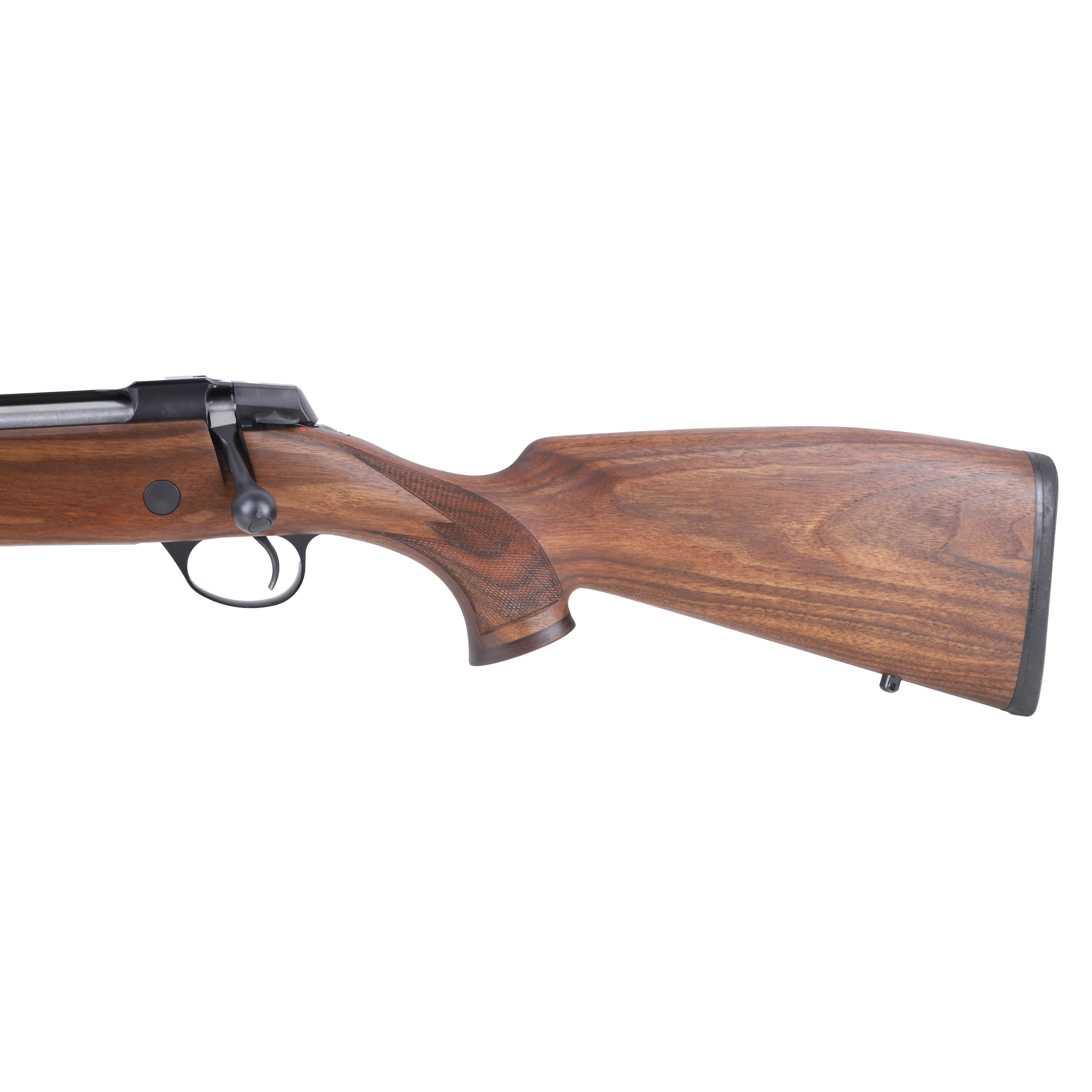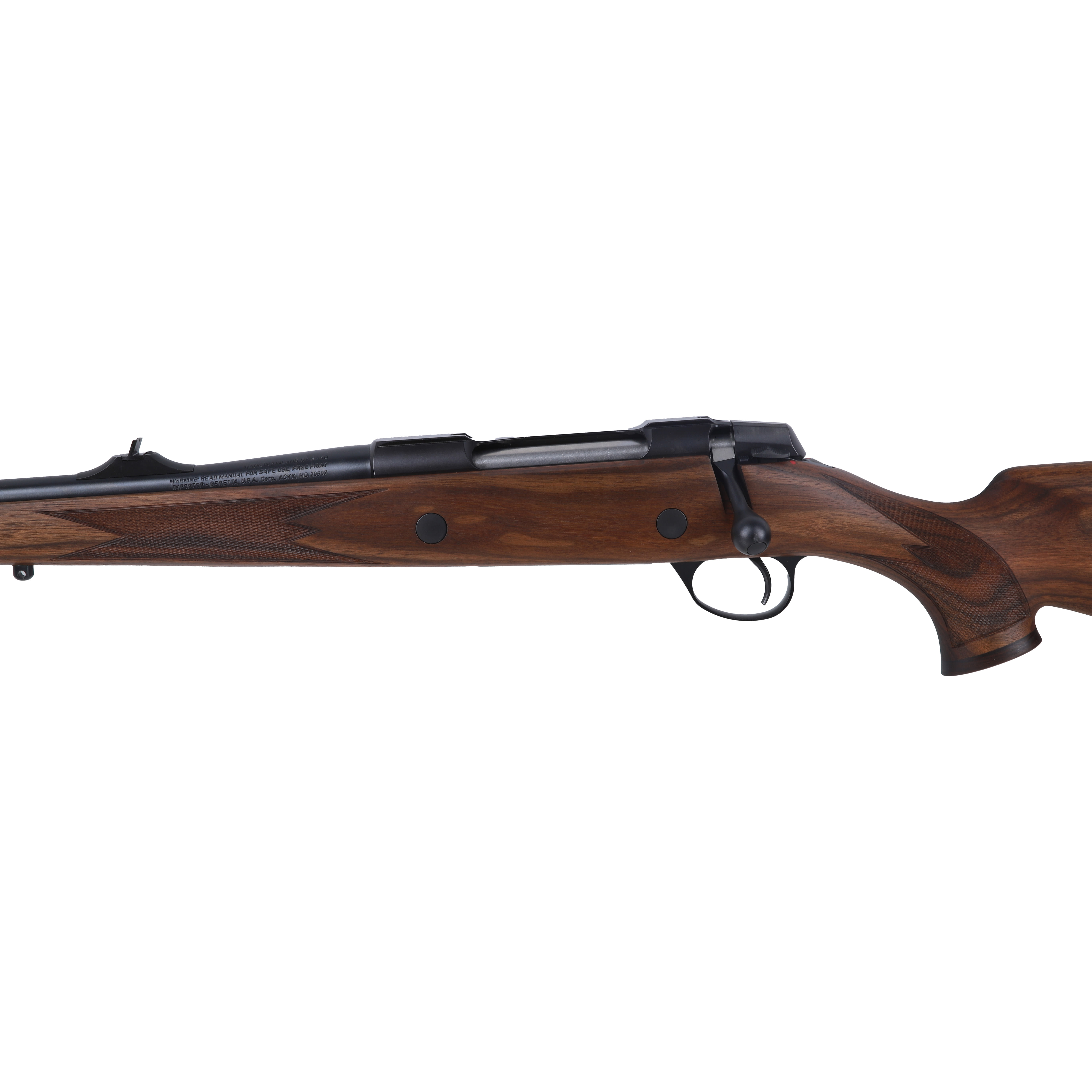 Sako’s 90 Bavarian builds off 25 years of rifle-building innovation, offering the same level of quality, reliability, and accuracy that all Sako rifles are known for. Combining both timeless elegance and flawless performance, the Sako 90 was designed with a large emphasis on high-seat hunting which involves fast shooting from a variety of different angles. As such, the 90 Bavarian is outfitted with a hog-back style stock which features an ergonomic raised cheek piece to promote proper alignment between the shooter’s eye and a mounted optic. Embedded with rosewood, the Bavarian’s stock features a slightly more vertical pistol grip for better hand placement, and is rounded out with a Schnabel forend. The 90 Bavarian comes standard with a single set trigger. This single stage trigger can be pushed forward to “set” the trigger, which reduces the pull weight by nearly 9 ounces for an extremely light trigger pull when you need to take an extra careful shot.