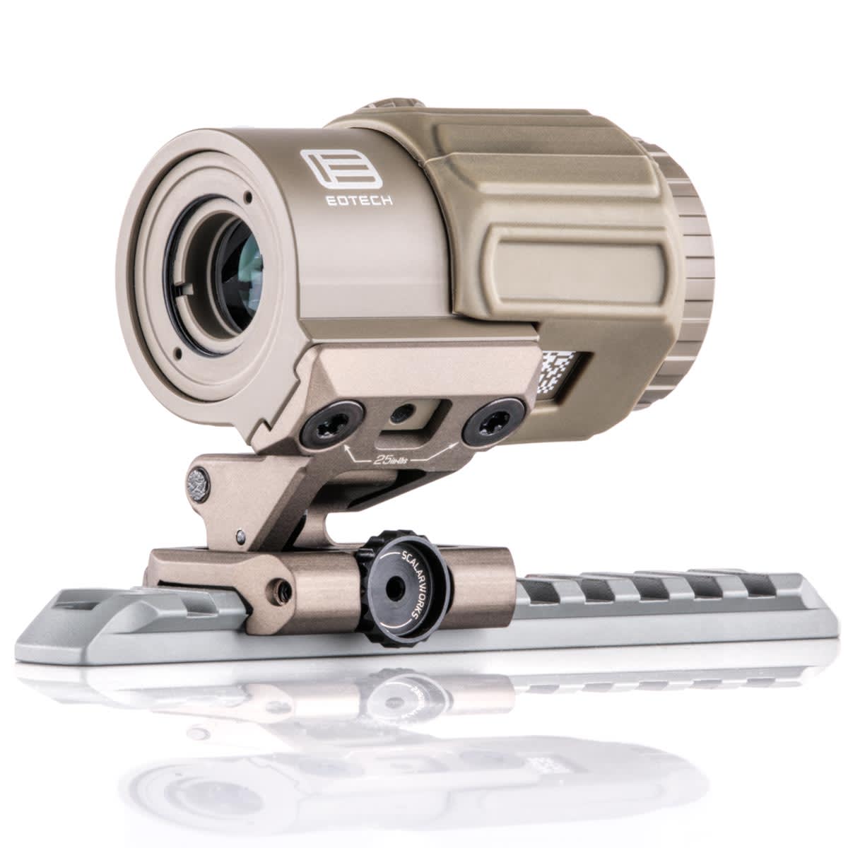 The LEAP/16 delivers the one of the lightest, strongest, and most compact quick-detach magnifier mounts on the market. Designed specifically for EOTech magnifiers, the LEAP/16 positions the magnifier at 45° - this reduces the risk of snagging and doesn't get in the way of weapon manipulations. The LEAP/16 mount attaches to the host weapon with the ClickDrive, a Scalarworks exclusive design that utilizes a highly efficient clamp design which only requires the torque from your bare hands to securely clamp the mount to the rail. To ensure precise operation and unprecedented rigidity, the ClickDrive features an oversized hooded thru-hole to buttress the thumbscrew's shank, which is the maximum possible diameter to fit a Picatinny channel. A pair of hardened steel precision ground pins is press fitted to the clamp and act as guides. The ClickDrive also makes the LEAP/16 completely recoil-proof thanks to a spring-loaded ball-detent.