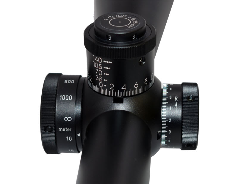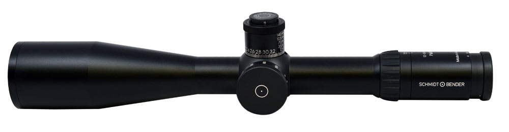 Schmidt & Bender has added the 12-50x56 PM II to their popular line of Police Marksman tactical scopes, the highest magnification riflescope Schmidt & Bender has created to date. The Schmidt & Bender 12-50X56 PM II is built on a 34 mm tube. It provides parallax adjustment from 50 m to infinity, and target-style adjustment turrets. Eye relief is 70 mm, and the scope measures 16.4 inches (417 mm) in length. Several reticles are offered with the Schmidt & Bender 12-50X56 PM II in either the first or second focal plane (depending upon the model). In addition to the P3 and P4 Fine, which offer sophisticated rangefinding capabilities, new Sport and Sport Fine reticles have also been introduced which will appeal to the precision target shooter.