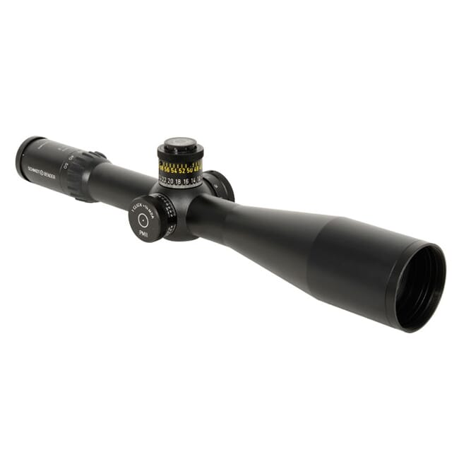 Schmidt & Bender has added the 12-50x56 PM II to their popular line of Police Marksman tactical scopes, the highest magnification riflescope Schmidt & Bender has created to date. The Schmidt & Bender 12-50X56 PM II is built on a 34 mm tube. It provides parallax adjustment from 10 m to infinity, and target-style adjustment turrets. Eye relief is 70 mm, and the scope measures 16.4 inches (417 mm) in length. Several reticles are offered with the Schmidt & Bender 12-50X56 PM II in either the first or second focal plane (depending upon the model). In addition to the P3 and P4 Fine, which offer sophisticated rangefinding capabilities, new Sport and Sport Fine reticles have also been introduced which will appeal to the precision target shooter.