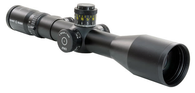This Schmidt Bender PMII 3-12x50 DT riflescope with Gen II Mildot reticle and CW is very versatile allowing distances up to 1500 meters. With a reticle in the first plane, distance evaluations are permitted in all magnifications.