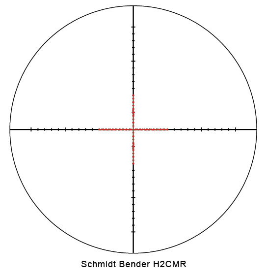 This Schmidt Bender PMII 5-25x56 MTC MRAD riflescope has an illuminated H2CMR reticle and .1 MRAD clockwise rotation.