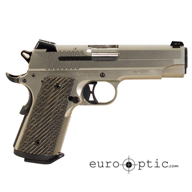 The 1911 Compact Nickel has a Nitron Nickel finish and comes with low profile night sights, checkered front strap and mainspring housing, brown vector G10 grips with steel magwell. The 7+1 capacity Compact model 1911 pistols features a shortened stainless steel slide, stainless steel frame, match grade barrel, hammer/sear set and trigger. The slides and frames are machined to exacting tolerances and hand-fitted to ensure reliability and performance.